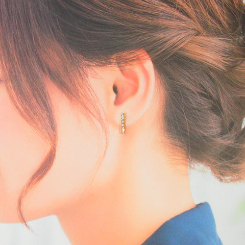 ちょっとひねりのかかったまっすぐタイプのチャームの中にキュービックジルコニアが片方に7つ留まっています。