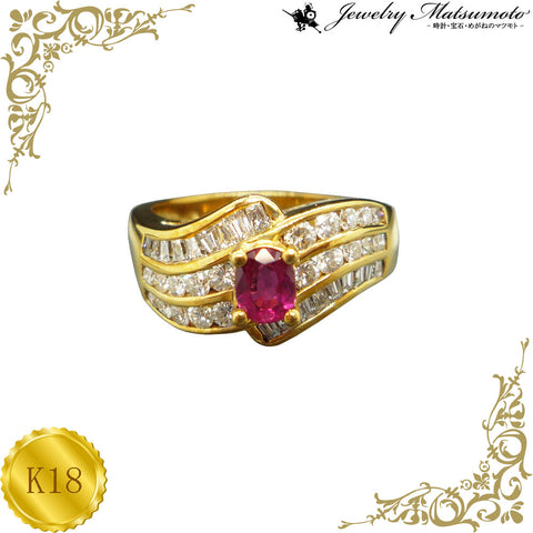 ○中石:ルビー 0.40ct 約4.5x3.5mm ダイアモンド 0.74ct