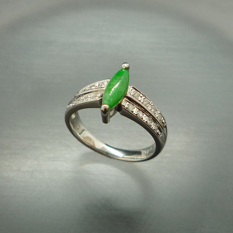 中石はマーキースカボションのひすい。左右に8ピースづつダイアモンドが留まっています。